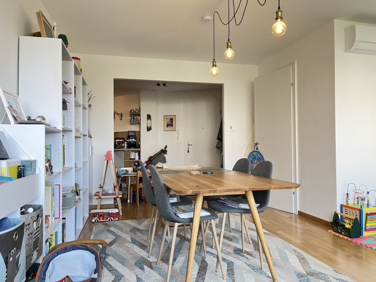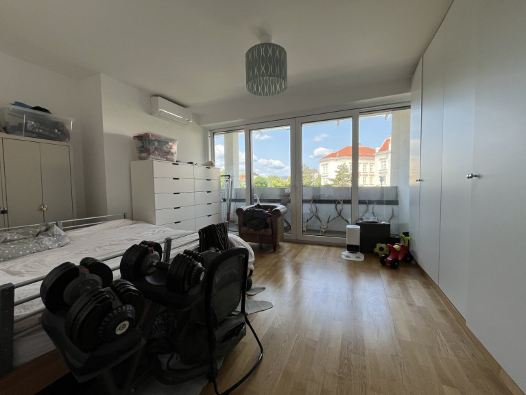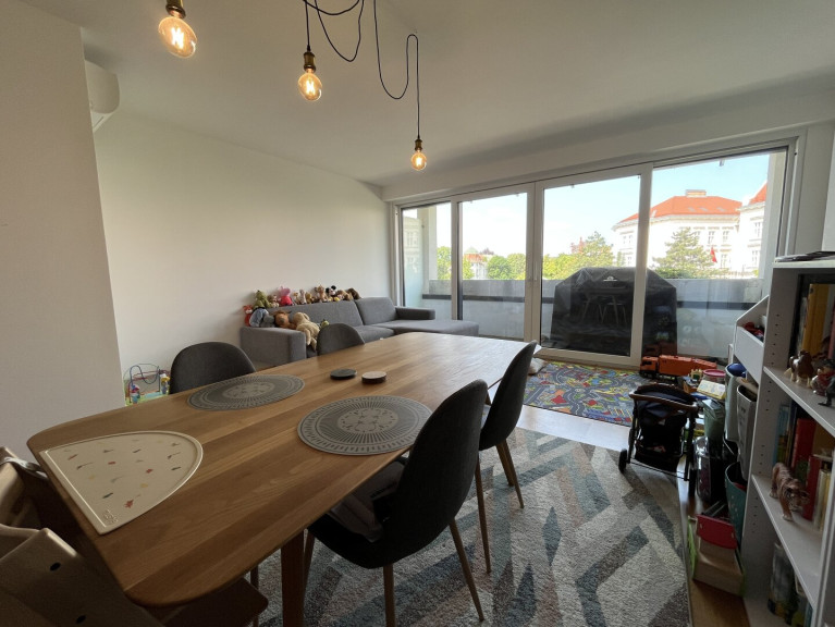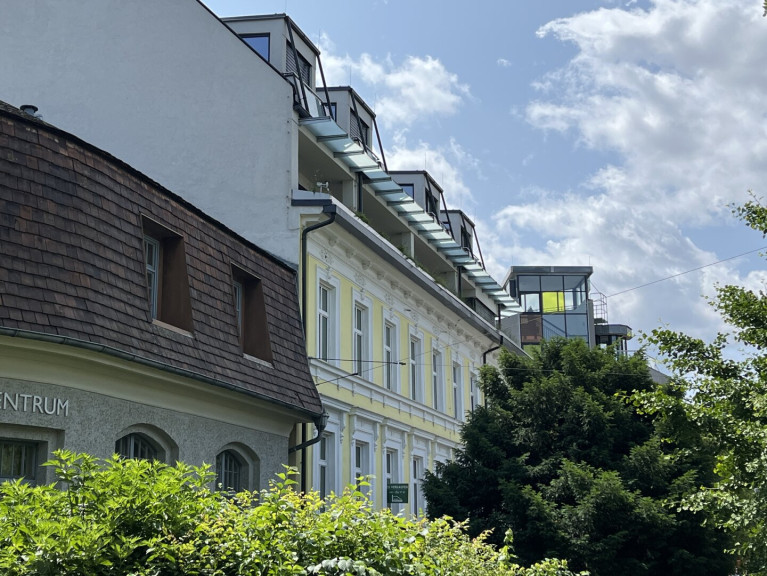 Der herrliche Stadtblick über die Dächer des 19. Bezirks hinein ins Grüne wird durch die durchgehenden großen Fensterflächen zu einem wahren Highlight dieser Wohnung. Dadurch ist die Wohnung auf natürliche Weise sehr hell.