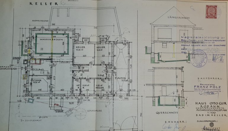 KG: Der Keller ist trocken und weitestgehend, natürlich über Oberlichten belichtet. Er umfasst eine Fläche von rund 190m² und beinhaltet ein Indoor Pool sowie 5 weitere Räume. Vom Keller gelangt man auch in die 30m² große Garage, welche Platz für 2 Autos bietet.