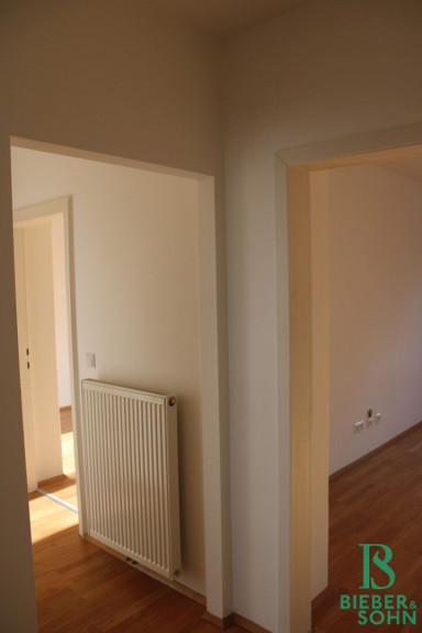 Ein Vorraum mit einem Duschbad mit Waschmaschinenanschluss, einem WC und einem Abstellraum, 2 große Zimmer und 1 kleines Durchgangszimmer, eine große Küche, ein sonniger Süd Balkon, ein Kellerabteil und ein allgemeiner Garten bietet diese Wohnung an.