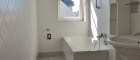 - Badezimmer mit Wanne, Waschbecken, Waschmaschinenanschluss und Fenster