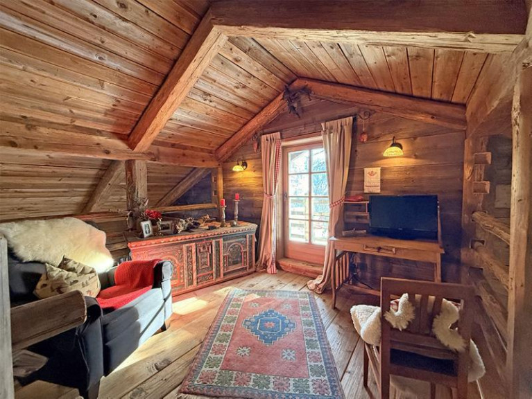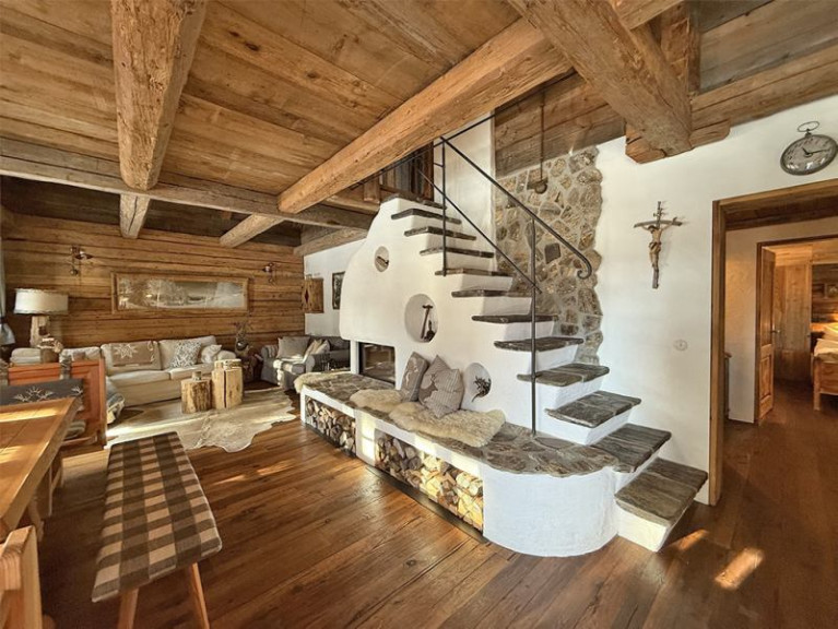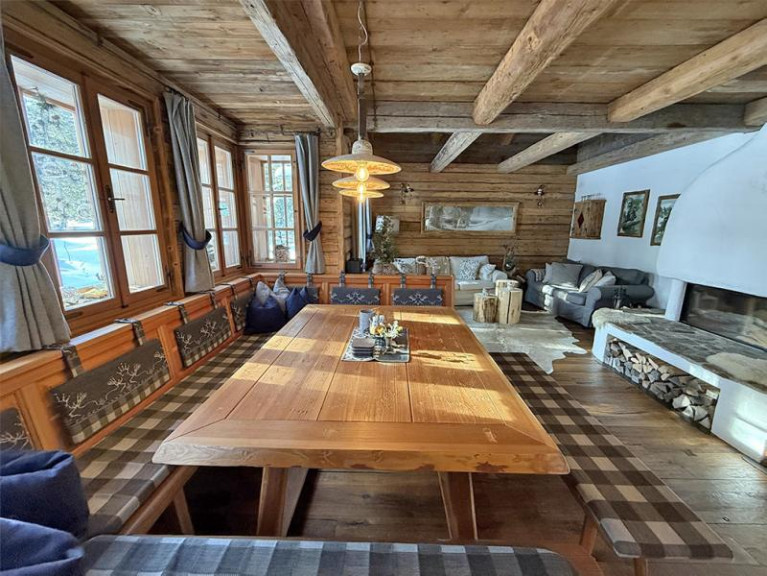 Trotz seines ursprünglichen Charakters verfügt das Chalet über moderne Ausstattung wie Fußbodenheizung mit Erdwärmepumpe, Glasfaser-Internet, verstecktes Heimkino mit Dolby Surround und vollautomatische Schneeräumung mit ganzjähriger Zufahrt.