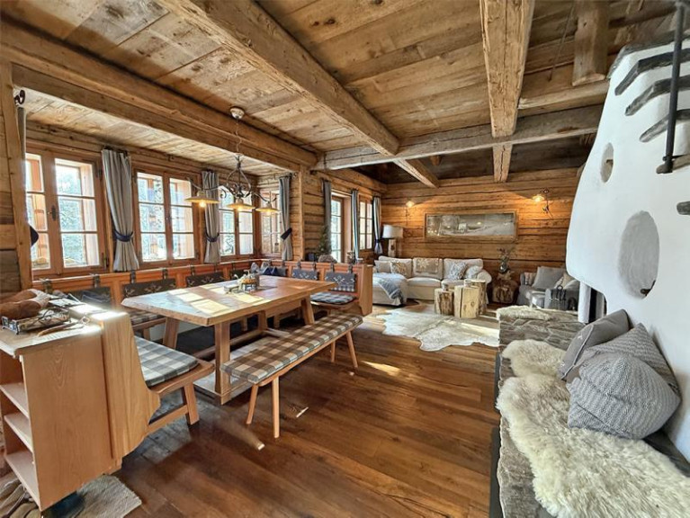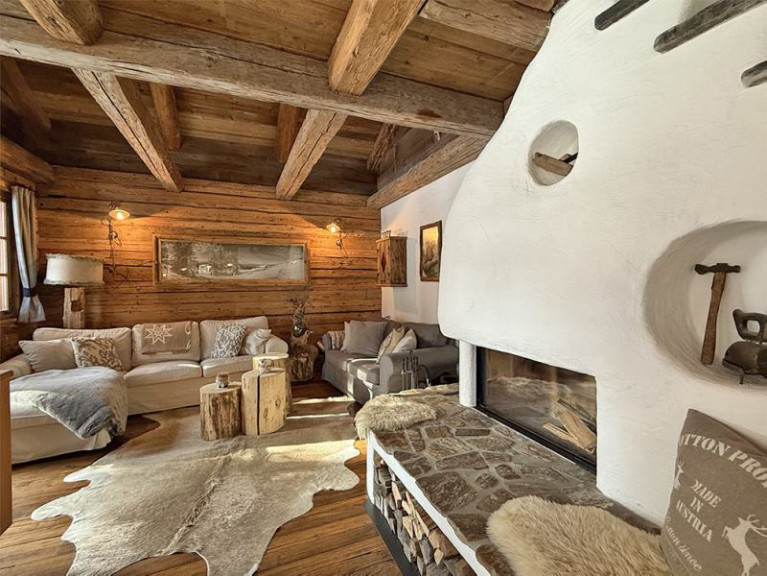 Despite its traditional character, the property features modern comforts such as underfloor heating with ground-source heat pump, fiber-optic internet, home cinema with Dolby Surround, and fully automated snow clearing with year-round access.