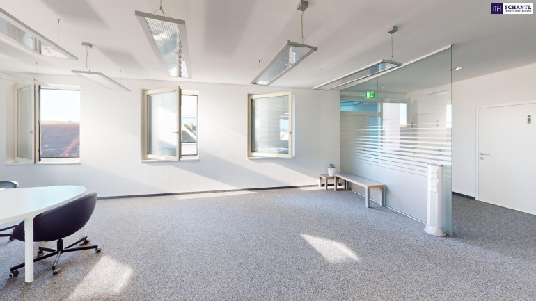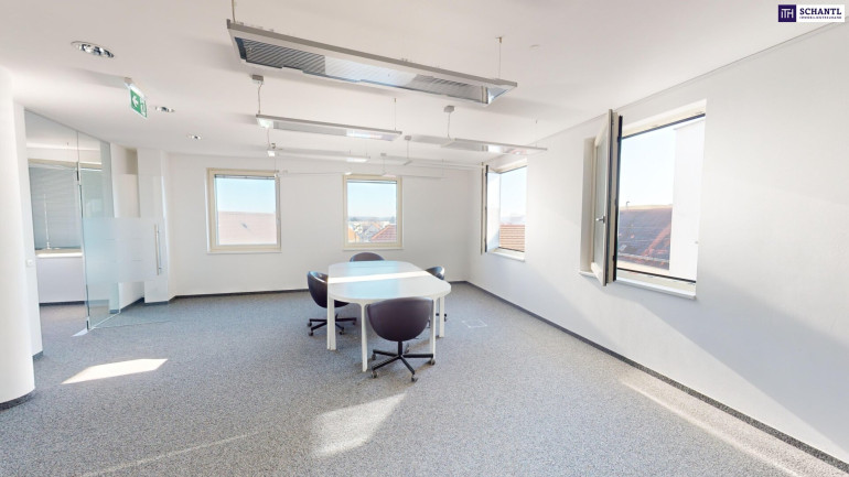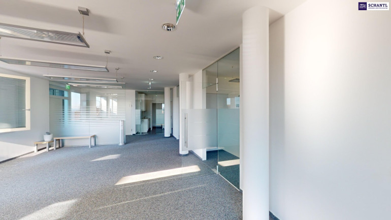 - Lichtdurchflutete Räume – Große Fensterfronten sorgen für eine angenehme Arbeitsatmosphäre