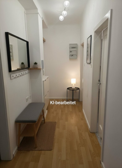 Die Wohnung unterteilt sich in: Einen Vorraum, ein Wohnzimmer, eine Küche und zwei Zimmer (Schlaf- bzw. Kinderzimmer), ein Bad mit Wanne und Waschbecken und ein extra WC. Zusätzlich befindet sich noch bei der Küche, welche vom Wohnzimmer aus begehbar ist, ein Abstellraum mit Waschmaschinenanschluss.