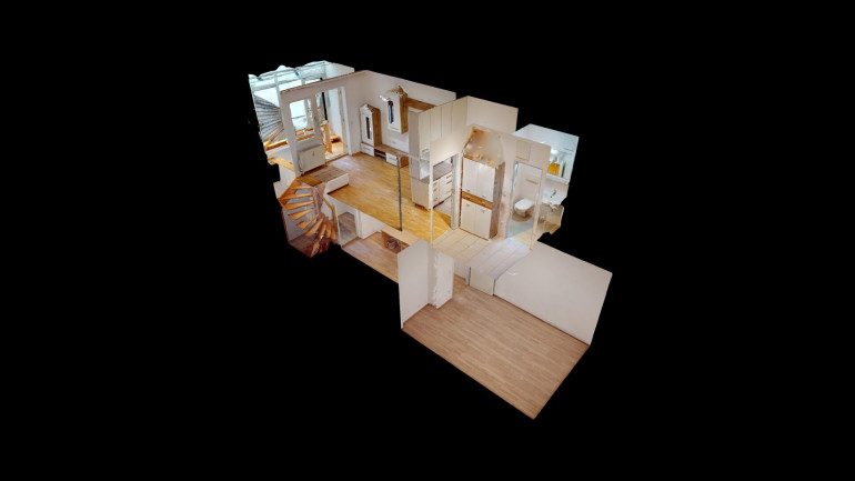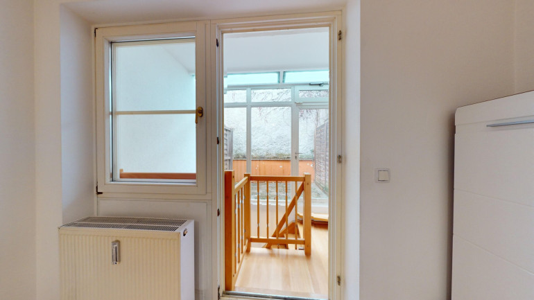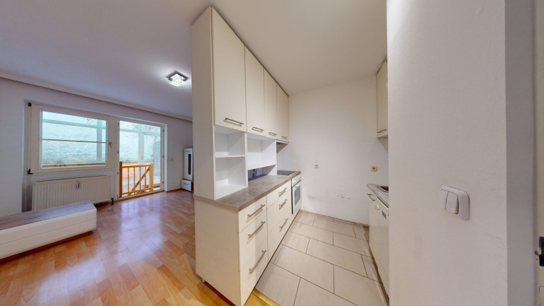 Das Besondere an dieser Wohnung ist die Aufteilung auf 2 Ebenen.Die erste Ebene befindet sich im Erdgeschoß und weist folgende Räumlichkeiten auf: Vorraum, WC, Wohnküche und Terrasse (ca.7m²). Über eine Wendeltreppe gelangen Sie in das Untergeschoß/Kellergeschoß welches folgende Räumlichkeiten aufweist: Vorraum, Badezimmer mit WC und Dusche sowie ein großzügiges Schlafzimmer. (im Untergeschoß befinden sich keine Fenster) Durch den eingeschränkten Lichteinfall sind diese Räume im Sommer angenehm kühl, im Winter angenehm warm dank der eingebauten Fussbodenheizung im Untergeschoß. Beheizt wird die Wohnung mit Fernwärme. Im Erdgeschoß wird die Wärme über Radiatoren abgegeben.