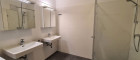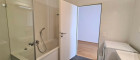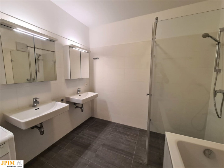 - großes Bad mit Badewanne, Doppelwaschbecken und Glasdusche (inkl. 2 Spiegelschränke und Waschmaschine)