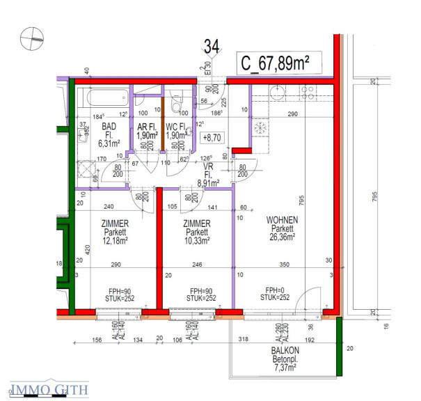Wohnung: € 195,27 (ohne Warmwasser/Heizungsakonto)