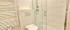 - Vorraum und Sanitärräume mit keramischen Fliesen (weiß/ grau) ausgestattet
