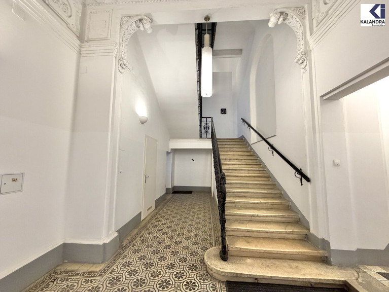 Dieses knapp ca. 56m² große Büro liegt im 1.Liftstock eines klassischen Stilhauses und gliedert sich wie folgt: