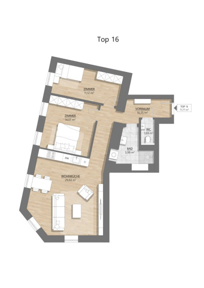 ERSTBEZUG! Moderne 3-Zimmer Wohnung mit lichtdurchfluteter Wohnküche! (Top 16)