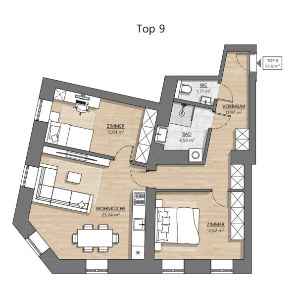 Der überwiegende Teil der Wohnungen besteht aus modernen 2 bis 3 Zimmerwohnungen. Die Größe der Wohnungen in Verbindung mit erstklassiger Ausstattung sowie der sehr guten Lage macht das Projekt aber auch attraktiv für Anleger, die auf der Suche nach einer soliden Vorsorgewohnung sind.
