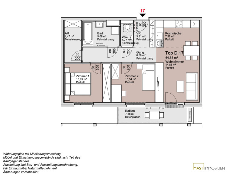 Alle verfügbaren Wohnungen finden Sie auf unserer Homepage unter www.mast-immo.at. Um Ihre Suche zu erleichtern, steht Ihnen auf unserer Projektseite www.anderschanze25.at ein Wohnungsnavigator zur Verfügung, der Ihnen hilft, sich einen Überblick über die Lage der einzelnen Wohnungen innerhalb des Komplexes zu verschaffen.