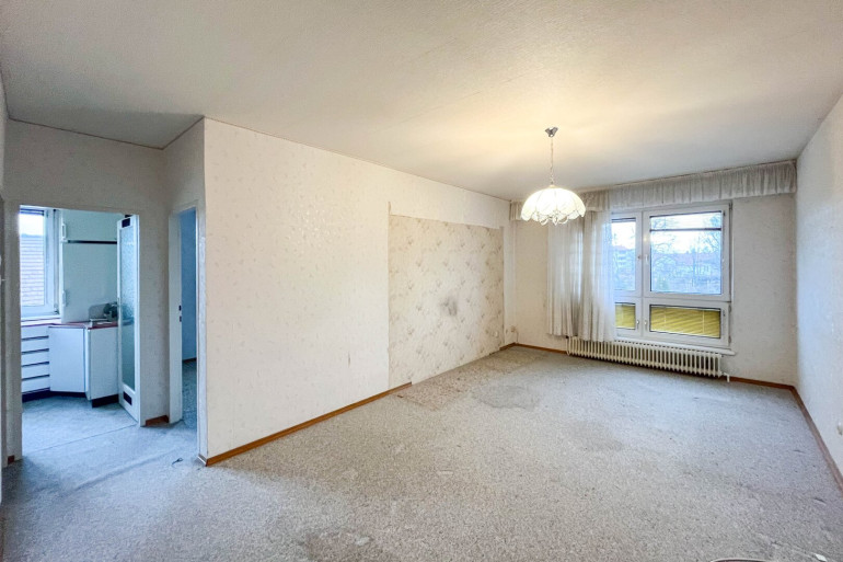 Der Eingangsbereich wird durch einen länglich gestalteten Vorraum gebildet, der ausreichend Platz für eine Garderobe bietet. Herzstück der Wohnung ist der großzügige Wohnraum, der vielfältige Möglichkeiten zur individuellen Gestaltung eines Wohn- und Essbereichs eröffnet. Ein weiteres Zimmer eignet sich ideal als Schlaf-, Arbeits- oder Gästezimmer. Die Küche ist funktional ausgestattet. Das Badezimmer verfügt über eine Badewanne, das WC ist separat ausgeführt. Ein praktischer Abstellraum innerhalb der Wohnung sorgt für zusätzlichen Stauraum.