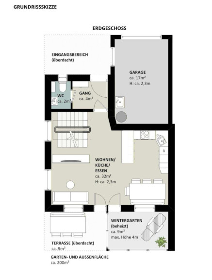 Dieses kleine, feine Reihenhäuschen Ăźberzeugt mit ca. 110 m² Wohnnutzfläche, einem offenen Wohn-/Ess-/Kochbereich und einem Wintergarten als atmosphärische Erweiterung des Wohnraums â mit direktem Zugang zur Terrasse und in den Garten.