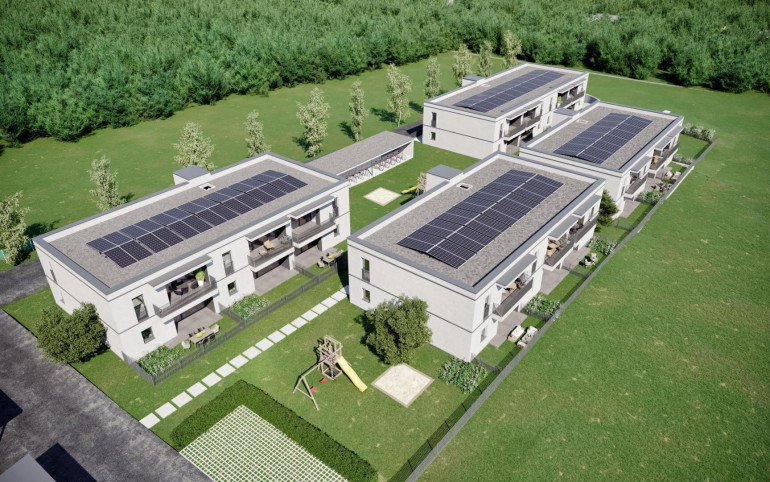 Alle Wohnungen verfügen über dreifach verglaste Fenster, eine komfortable Fußbodenheizung mit Wärmepumpe und sind über einen Aufzug barrierefrei erreichbar. Eine zentrale Photovoltaikanlage unterstützt die nachhaltige Energieversorgung.