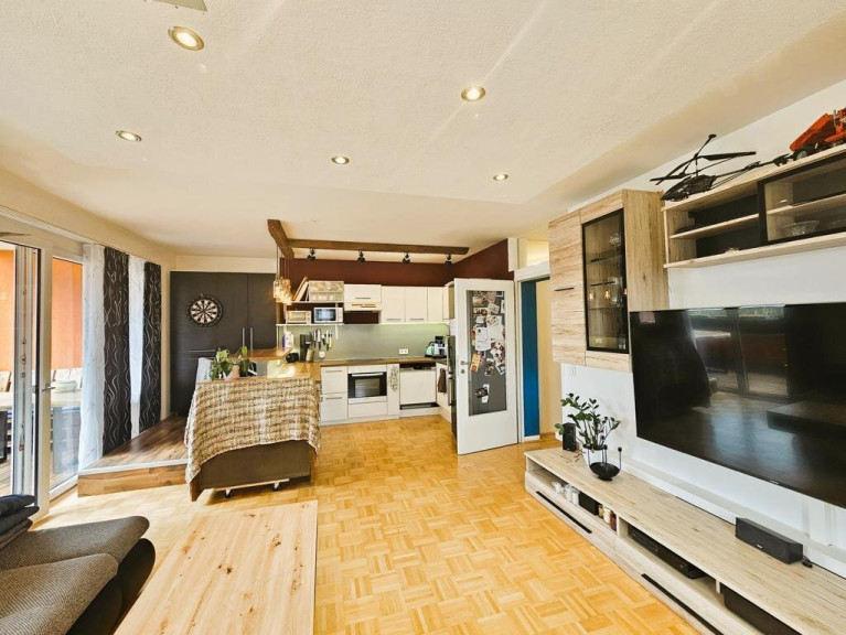 Diese wunderschöne 3-Zimmer-Wohnung befindet sich am Rand der Wohnanlage und bietet einen freien Blick ins Grüne. Der helle und großzügige Wohn-Ess-Kochbereich mit direktem Zugang zur Loggia schafft eine angenehme Wohnatmosphäre und lädt zum Entspannen ein.