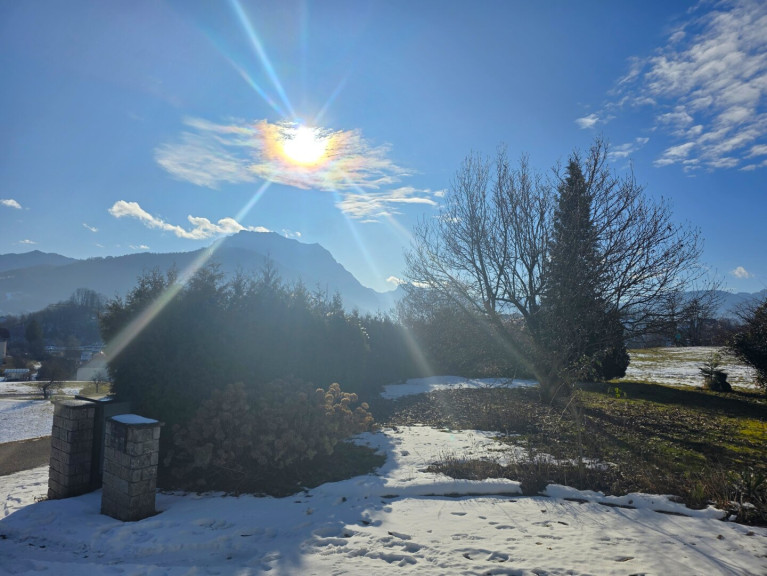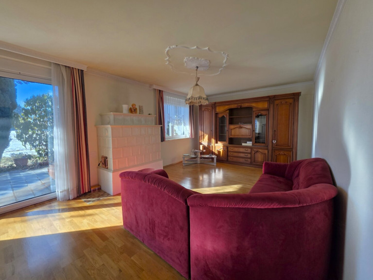 Dieses gepflegte Einfamilienhaus bietet auf einer Ebene im Erdgeschoss rund 135 m² barrierefreie Wohnfläche und verbindet eine ruhige Wohnlage mit zentrumsnaher Infrastruktur. Das 1.013 m² große, eben gelegene Grundstück mit liebevoll angelegtem Garten und altem Baumbestand sorgt für Privatsphäre und eine grüne Wohlfühlatmosphäre. Der Blick in die beeindruckende Gebirgswelt ist aktuell durch eigene Sträucher und Bäume leicht abgeschirmt – wer mehr Panorama wünscht, kann dieses mit wenigen Handgriffen deutlich erweitern.Wohnkomfort auf einer Ebene