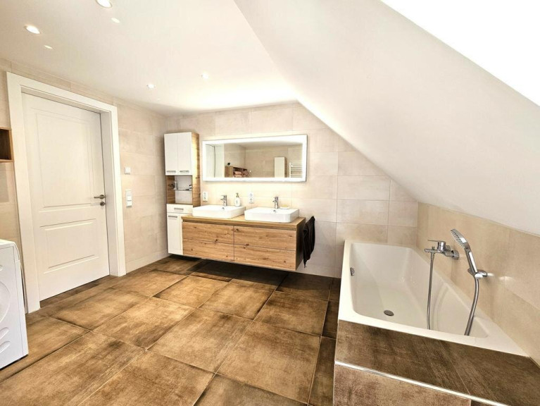 Drei Schlafzimmer und ein sehr großzügiges Badezimmer mit Wanne und Dusche runden diesen Wohnbereich perfekt ab.