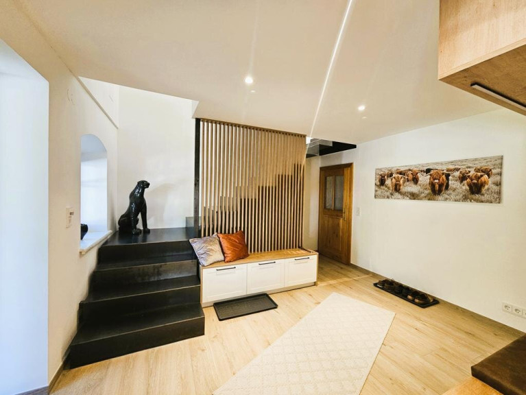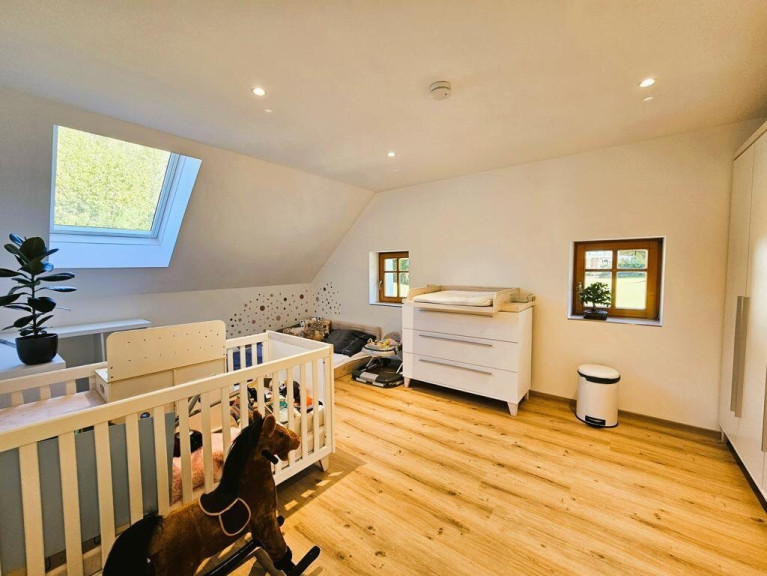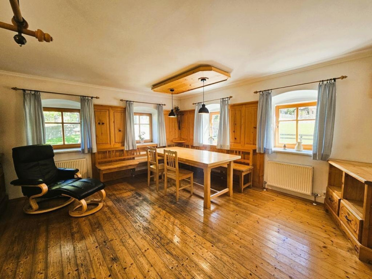 Dieses außergewöhnliche Anwesen, dessen Ursprünge bis ins 18. Jahrhundert zurückreichen, verbindet historischen Charme mit modernstem Wohnkomfort. Ursprünglich als Mühle errichtet und später als Bäckerei genutzt, präsentiert es sich heute als landwirtschaftliches Anwesen, das in den Jahren 2022/23 umfassend und hochwertig saniert wurde.Während die alten Grundmauern den historischen Charakter bewahren, wurden der gesamte Ausbau des Obergeschosses sowie der Vorraum im Erdgeschoss vollständig neu errichtet und modern ausgestattet. Die obere Wohneinheit umfasst ca. 136 m² Wohnfläche sowie eine Galerie mit zusätzlichen rund 56 m², ohne Berücksichtigung der Dachschrägen.