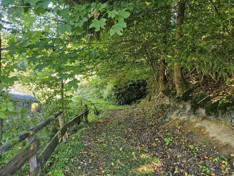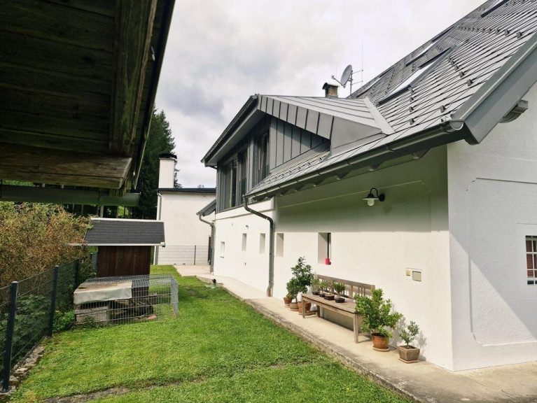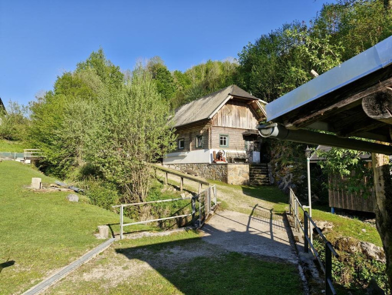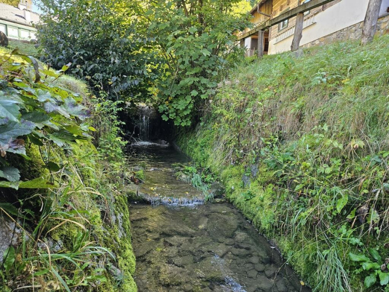 Direkt hinter dem Haus verläuft ein kleiner Bach und betont den naturnahen Charakter des Anwesens. Aufgrund des Baches befinden sich ein Teil der Liegenschaft in einer behördlich ausgewiesenen Gefahrenzone.