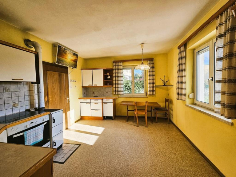 Im Erdgeschoss befindet sich eine möblierte Küche, von der man direkt in das Wohnzimmer gelangt. Weiters stehen ein Schlafzimmer, ein Badezimmer, eine separate Toilette sowie Vorraum und Garderobe zur Verfügung.