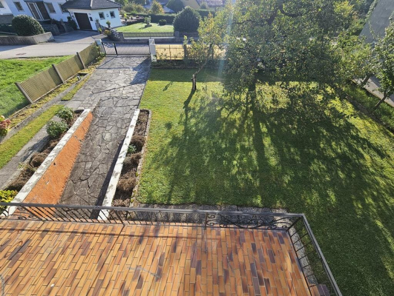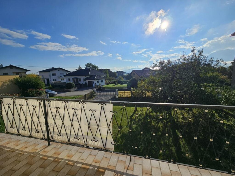 Vom Haus aus ist der Blick auf den Pinsdorfberg gegeben, ebenso besteht vom Balkon Aussicht auf den Traunstein.
