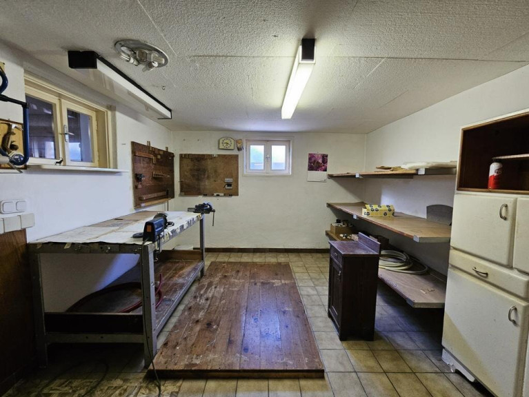 Das Haus ist vollständig unterkellert und verfügt über eine in den Keller integrierte Garage. Zusätzlich verfügt es über eine Werkstatt sowie weitere Kellerräume, die sich ideal für handwerkliche Arbeiten oder als praktische Lagermöglichkeiten eignen.