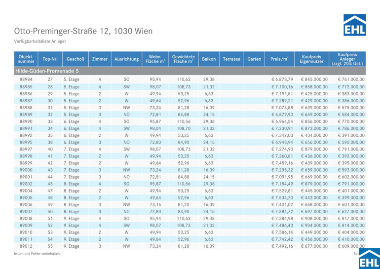 Eckdaten Objektnr. 88962