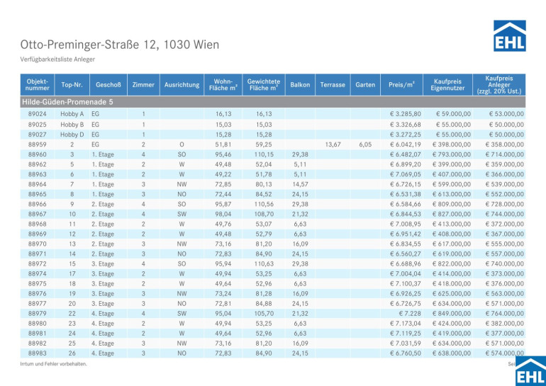 Eckdaten Objektnr. 88920