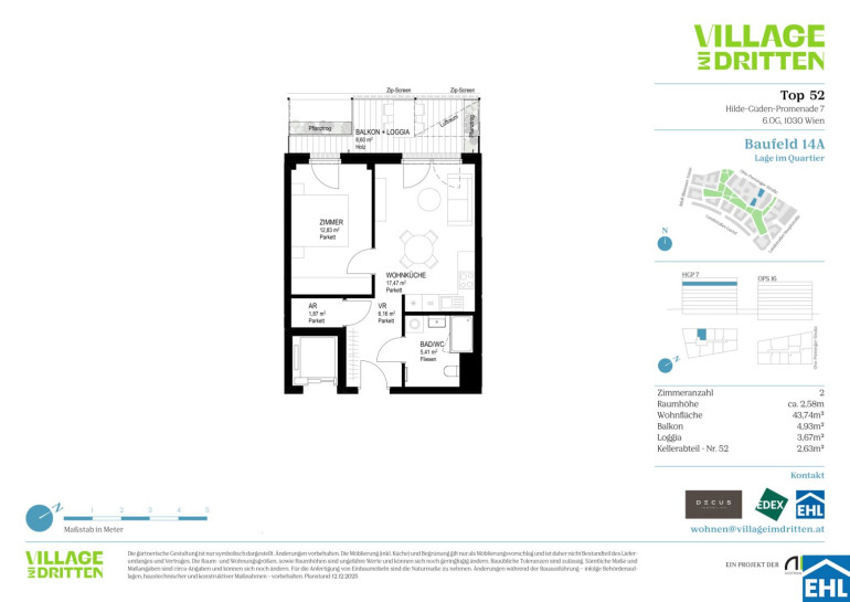 Im dritten Wiener Gemeindebezirk entsteht mit dem VILLAGE IM DRITTEN ein neues Stück Stadt – eines der größten Stadtentwicklungsgebiete Wiens. Auf über elf Hektar entwickelt die ARE Austrian Real Estate gemeinsam mit der Stadt Wien und dem wohnfonds_wien ein lebendiges, nahezu autofreies Quartier mit rund 2.000 Wohnungen, Büro- und Gewerbeflächen, Kinderbetreuung, Bildungseinrichtungen und Nahversorgung. Das grüne Herz bildet der über 2 Hektar große Bert-Brecht-Park –eine Oase für Erholung, Begegnung und Spiel. Alle Dächer, die nicht begehbar sind, werden begrünt. Sharing-Angebote, Einkaufsmöglichkeiten und Gastronomie liegen direkt vor der Haustüre. Nachhaltigkeit, kurze Wege und hohe Lebensqualität sind die Leitlinien dieses neuen Stadtviertels.