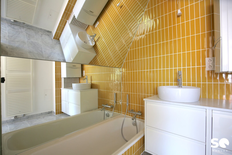 Genießen Sie auf der ca. 26 m² großen Terrasse einen atemberaubenden Blick ins Grüne. Der Weitblick Richtung Hügelpark und Küniglberg sorgt für eine einzigartige Atmosphäre. - Luxuriöses Badezimmer mit Tageslicht