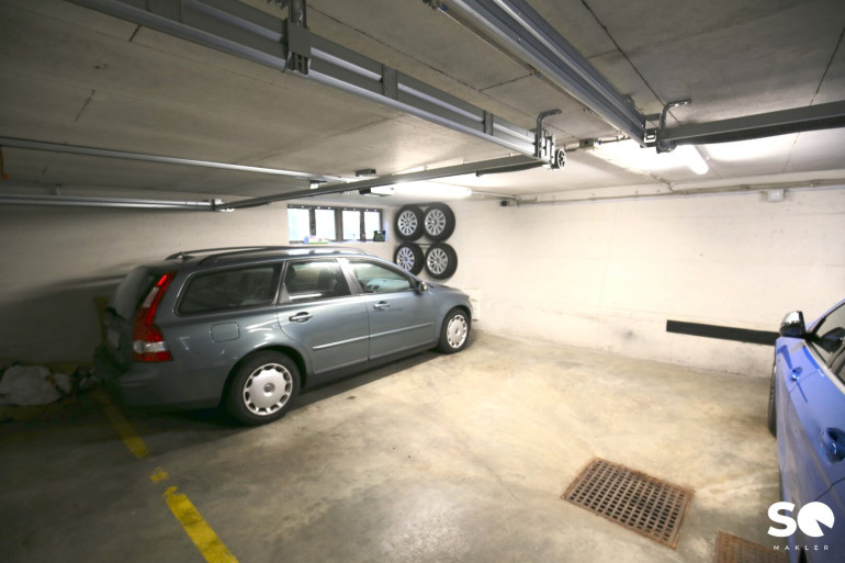 Zur Wohnung gehört ein Parkplatz in der Garage sowie ein Kellerabteil. Allen Bewohner des Hauses steht ausserdem eine Waschküche zur Verfügung.