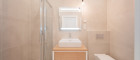 - Badezimmer mit Dusche und Toilette