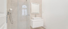 Beim Betreten der Wohnung befindet sich gleich links ein praktischer Abstellraum, rechts davon die separate Küche. Im Anschluss liegt, ebenfalls auf der rechten Seite, das modern gestaltete Badezimmer mit Dusche. Direkt gegenüber befindet sich ein eigenes WC.