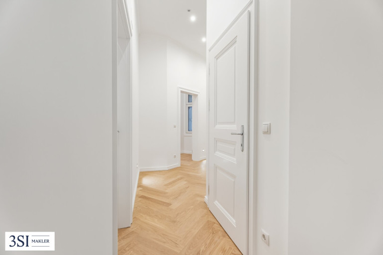 Die gesamte Wohnung ist mit edlem Eichenparkett im Fischgrätmuster ausgestattet. Türen und Fenster wurden im klassischen Altbaustil erneuert und unterstreichen den besonderen Charme dieser Immobilie. Als Erstbezug nach umfassender Sanierung verbindet dieses Objekt historische Eleganz mit modernem Wohnkomfort – perfekt für alle, die das Besondere suchen.