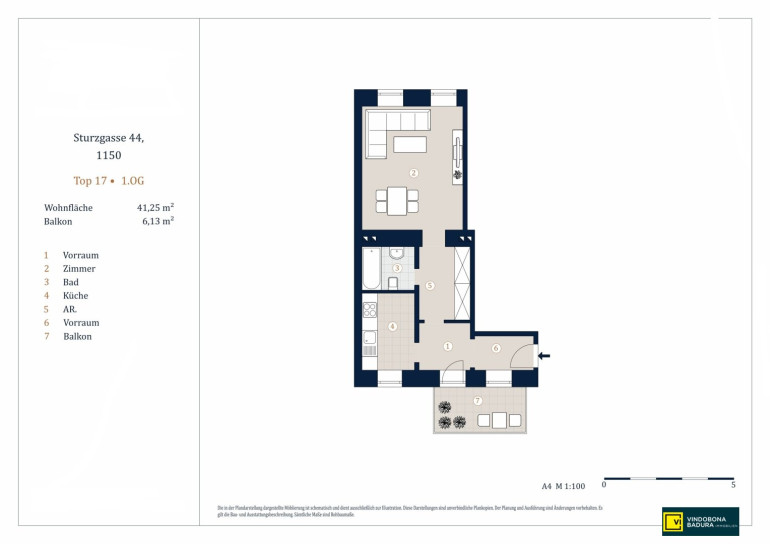 Mit einer Wohnfläche von 41,25 m² bietet sie eine kompakte, aber sehr gut durchdachte Raumaufteilung, ideal für Singles, Paare oder als Stadtwohnung. Die Grundrissgestaltung ermöglicht helle Räume und ein angenehmes Wohngefühl.