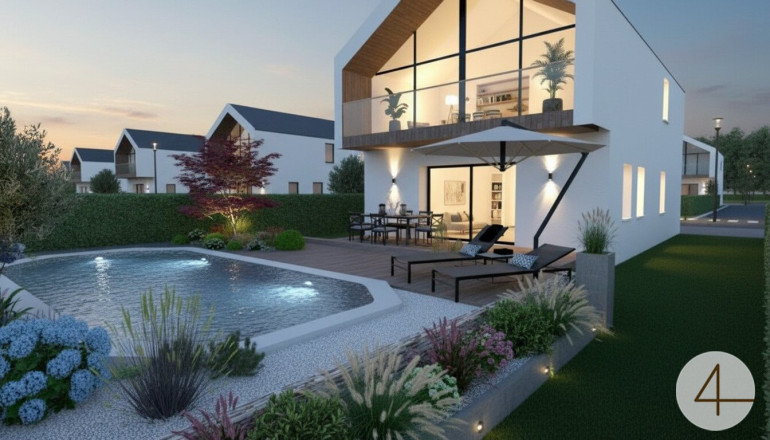 Der Planentwurf ist fertig und das Ergebnis ist wunderschön. Ein modernes Einfamilienhaus, zeitgemäße Architektur und der liebevolle Charme eines Chalets, macht die Häuser zu etwas ganz besonderen. Die Fotos sind Symbolfotos, Einrichtungsgegenstände, Pool und sowie die Bepflanzung und Dekor sind im Preis nicht inbegriffen. Der Preis bezieht sich lediglich auf das schlüsselfertige Haus inklusive Grundstück.