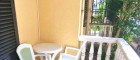 Auf dem Balkon sind schöne Steinfliesen verlegt.