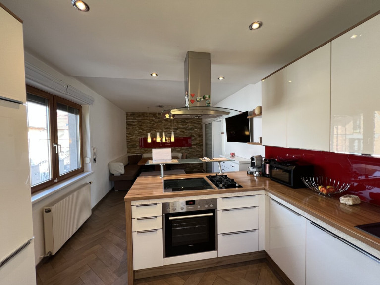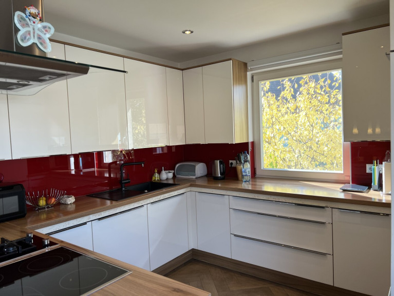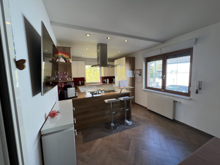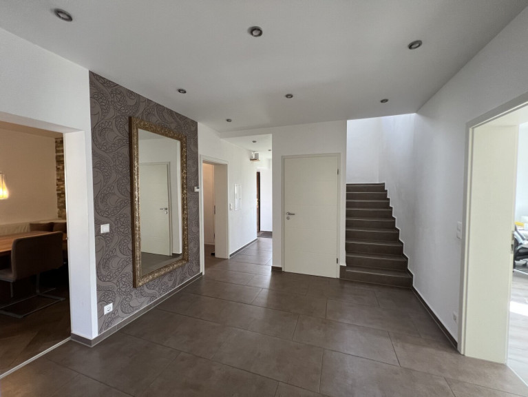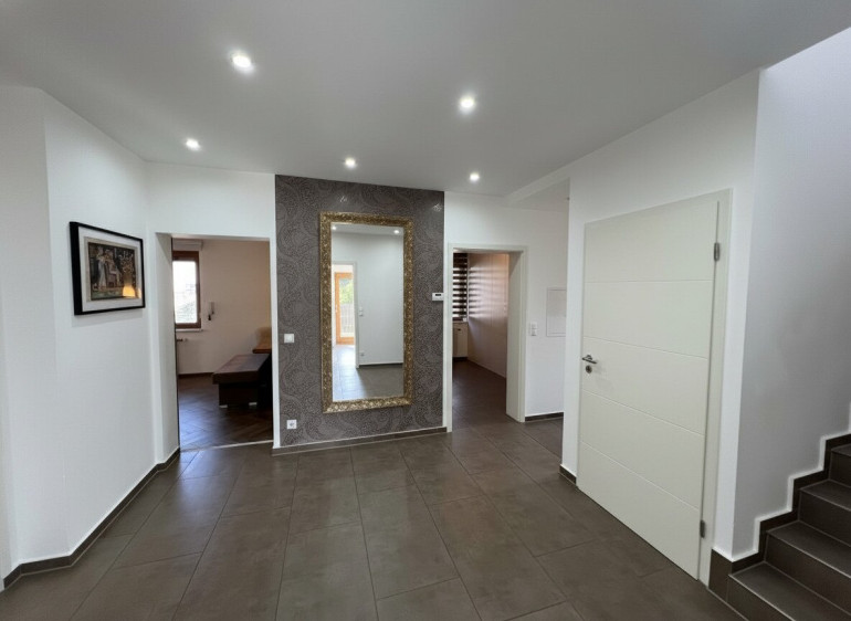 Auf großzügigen 172m² Wohnnutzfläche erleben Sie ein durchdachtes Raumkonzept, das sowohl Platz für Familie als auch für gesellige Zusammenkünfte bietet. Die lichtdurchfluteten Räume sind mit hochwertigen Materialien ausgestattet, darunter Fliesen, Laminat und Steinboden, die nicht nur eine ansprechende Optik bieten, sondern auch pflegeleicht sind. Die moderne Einbauküche ist das Herzstück des Hauses und lädt zum Kochen und Verweilen ein.