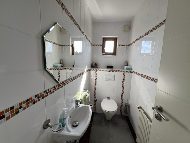 Das Haus verfügt über insgesamt drei WCs und zwei Bäder, eines davon mit Fenster und Badewanne – ideal für die ganze Familie. So wird der morgendliche Ansturm zum Kinderspiel. Die zentrale Heizungsanlage sorgt zudem für ein angenehmes Raumklima, egal zu welcher Jahreszeit.