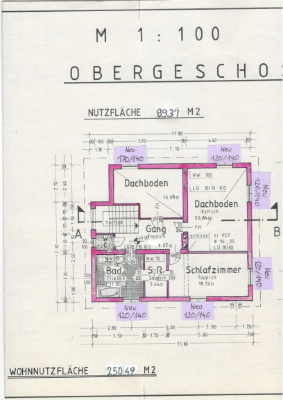 - im Obergeschoss ist die Decke mit 5cm Mineralwolle gedämmt
