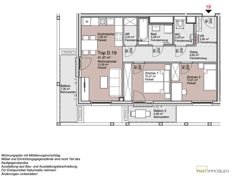 Alle verfügbaren Wohnungen finden Sie auf unserer Homepage unter www.mast-immo.at. Um Ihre Suche zu erleichtern, steht Ihnen auf unserer Projektseite www.anderschanze25.at ein Wohnungsnavigator zur Verfügung, der Ihnen hilft, sich einen Überblick über die Lage der einzelnen Wohnungen innerhalb des Komplexes zu verschaffen.