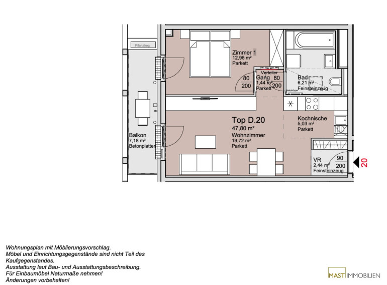 Alle verfügbaren Wohnungen finden Sie auf unserer Homepage unter www.mast-immo.at. Um Ihre Suche zu erleichtern, steht Ihnen auf unserer Projektseite www.anderschanze25.at ein Wohnungsnavigator zur Verfügung, der Ihnen hilft, sich einen Überblick über die Lage der einzelnen Wohnungen innerhalb des Komplexes zu verschaffen.