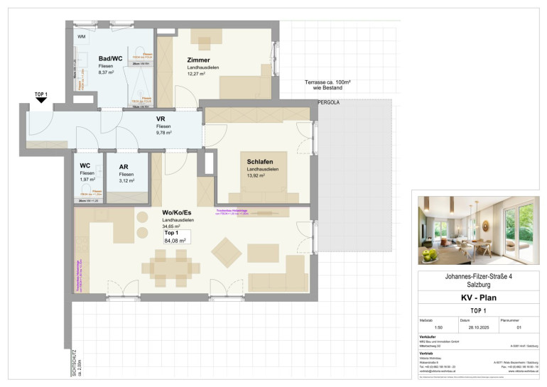 - Vorraum, Bad, WC und Abstellraum keramischen Bodenfliesen (80x80cm) in beige