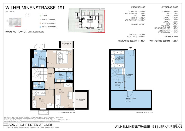Ein Garagenplatz kann zu einem Preis von € 32.500,- Netto zzgl. 20% USt. erworben werden.