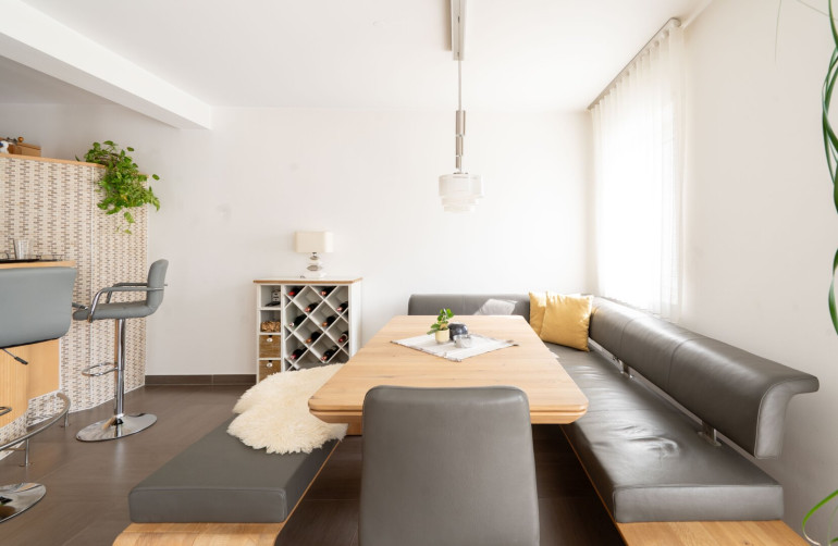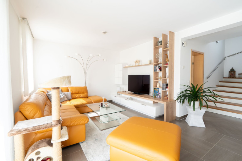 In Hörsching gelangt eine moderne Doppelhaushälfte mit rund 125 m² Wohnfläche auf einem 351 m² großen Grundstück zum Verkauf. Das Haus besticht durch eine durchdachte Raumaufteilung, hochwertige Ausstattung und zahlreiche Extras, die ein komfortables Wohnen ermöglichen. Im Erdgeschoss erwartet Sie ein großzügiger Wohn- und Essbereich mit Kamin, der für eine angenehme Atmosphäre sorgt. Von hier aus gelangen Sie auf die Terrasse und in den Garten – ein idealer Platz zum Entspannen oder für gesellige Stunden mit Familie und Freunden. Die Küche der Marke Breitschopf überzeugt durch modernes Design und praktische Ausstattung. Ergänzt wird das Raumangebot dieser Ebene durch ein Gäste-WC sowie den Technikraum und einen Abstellraum. Im Erdgeschoss befinden sich ebenfalls die 2 Carport-Stellplätze. Eine Wallbox ist ebenfalls vorhanden. Das Obergeschoss bietet drei helle Zimmer, die sich als Schlafzimmer, Kinderzimmer oder Büro eignen. Das Badezimmer ist mit Badewanne, Dusche und Doppelwaschbecken ausgestattet und erfüllt höchste Ansprüche an Komfort. Besonders attraktiv ist der Außenbereich: Ein Pool mit den Maßen 5 x 3 Meter und einer Tiefe von 1,60 Metern sorgt für Erfrischung an warmen Tagen, die Terrasse mit elektrischer Markise bietet zusätzlichen Wohnkomfort. Ein Brunnen erleichtert die Gartenbewässerung. Auch technisch ist das Haus auf einem modernen Stand. Eine Luftwärmepumpe in Kombination mit Fußbodenheizung und Wohnraumlüftung sorgt für ein angenehmes Klima. Sicherheitsbewusstsein unterstreichen die installierte Alarmanlage und die 3-fach verglasten Fenster.