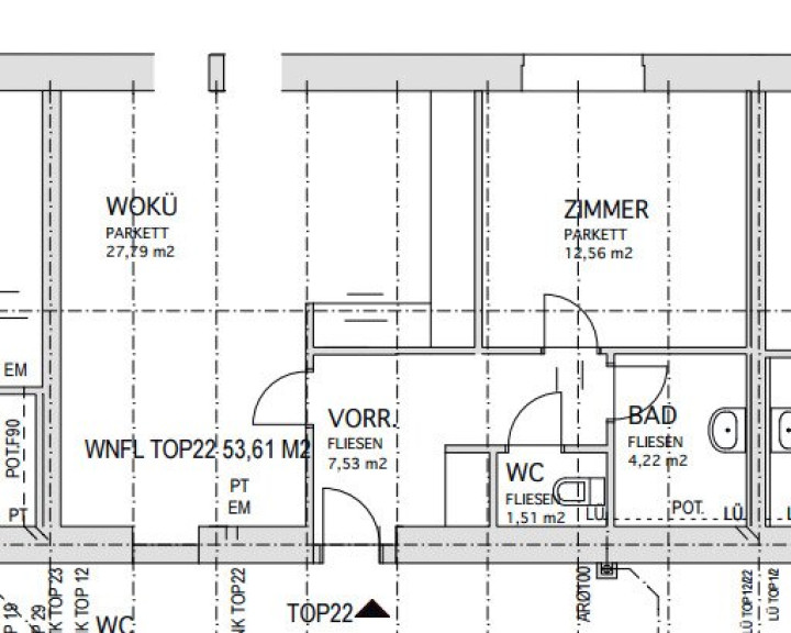 ca. 54 m² Wfl + ca. 2 m² Kellerabteil: