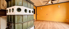Heizung: Kachelofen + elektrische Fußbodenheizung