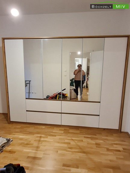 Folgende Gegenstände würden gegen eine Ablöse von € 1.800 in der Wohnung bleiben: Kleiderschränke im SZ, Vorraummöbel und Spiegelschrank mit Waschbecken.