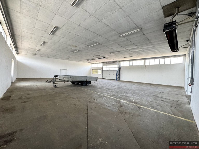 Die Hallen sind beheizbar (Gasheizung) und bieten durch zwei großzügige Einfahrtstore eine unkomplizierte Andienung: